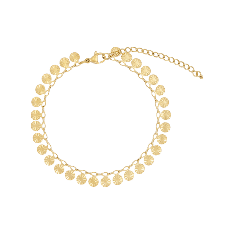 Fint armbånd i stål. Belagt med 14 karat guld. Armbåndet er 17 cm 5 cm forlænger. Vandfast med unik holdbarhed.