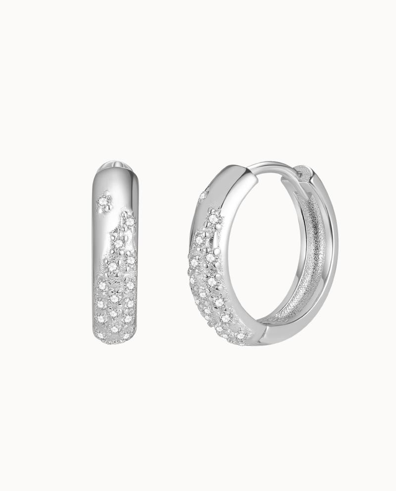 Astra Earrings er en smuk chunky hoop fyldt med klare kubiske zirkoner. Øreringene er gode alene Men er også gode, at style sammen med andre hoops. For, at skabe et mere stacked look. Brug dem evt sammen med Nila Earrings. Astra Earrings er en del af vor
