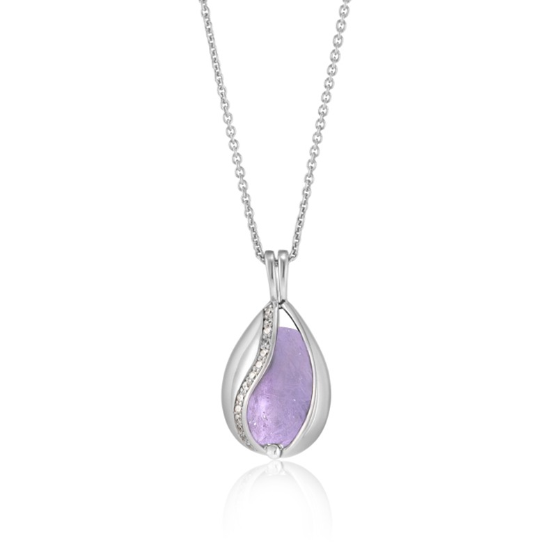 Halskæde i sølv med blank overflade. Fine zirkonia og smuk ametyst. Du kan selv skifte sten i smykket. Ametyst. Enrensendeogberoligendesten for både krop og sind. Du får tillid til dig selv og til verden og den giverklarhedtil, at træffe svære bes