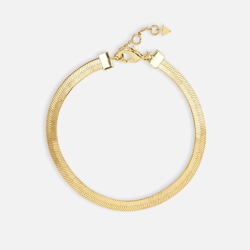 Beskrivelse Sildeben kæde armbånd. Et moderne armbånd. Der kan bæres alene eller også blandet med dine andre foretrukne armbånd. Den skinnende overflade af armbåndet giver en flot iøjnefaldende detalje til dit outfit. Et smukt guldarmbånd. Der kan bæres af all
