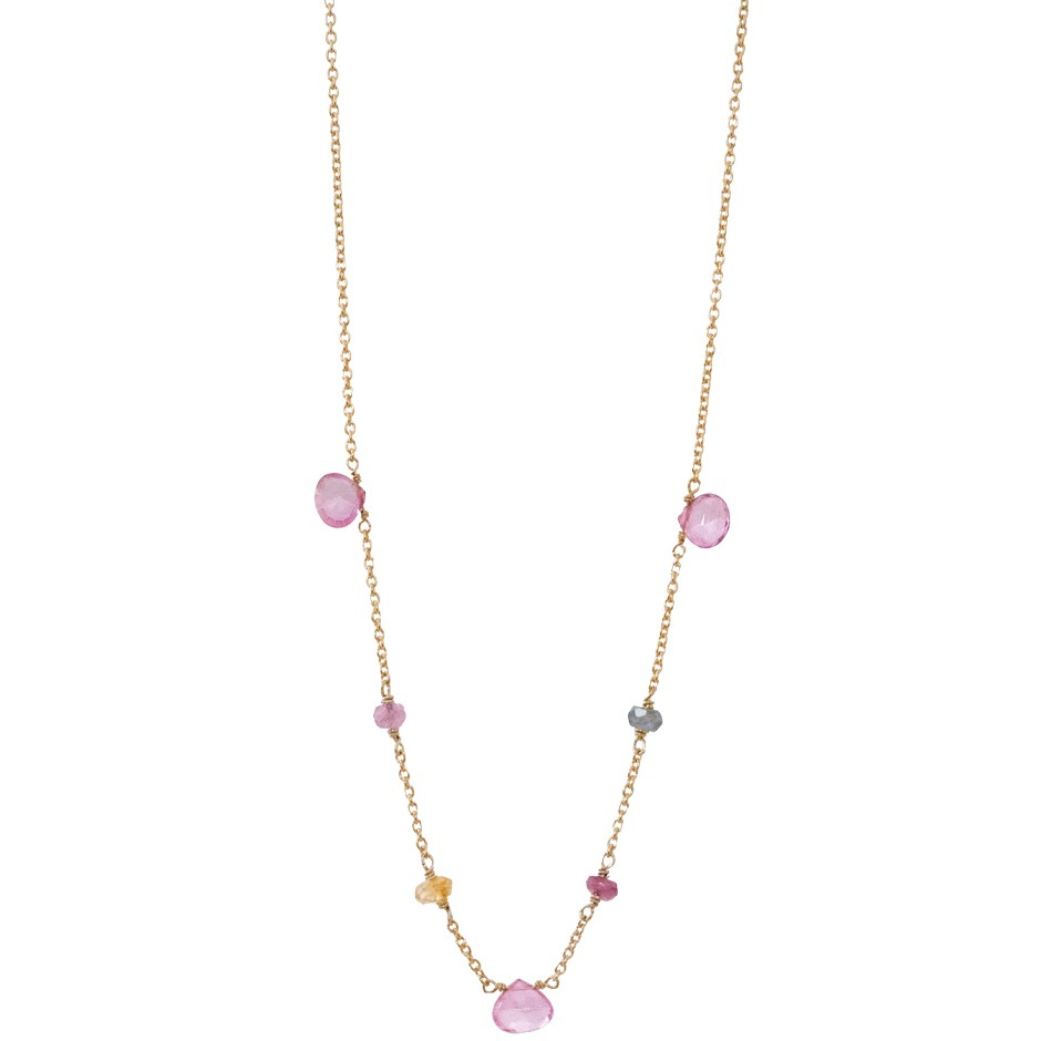 Produkt ID. Forgyldt-halskæde-med-pink-turmalin-grøn-turmalin-pink-topas-citrin-rabinovich-design-smykker-til-kvinder