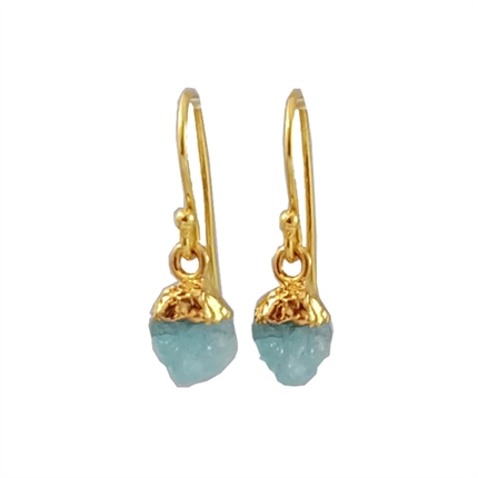 Rigtig fine guldbelagte øreringe med de sødeste aquamarin. Stenene er rå og uslebne. Hvilket gør, at de står fantastisk til resten af øreringene.