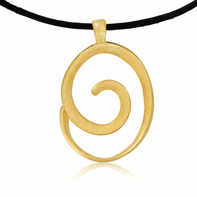Halssmykke i matteret guldbelagt sølv. Udsmykket med en glimtende zirkonia. Et smukt og organisk formet sving gør dette smykke helt unik.