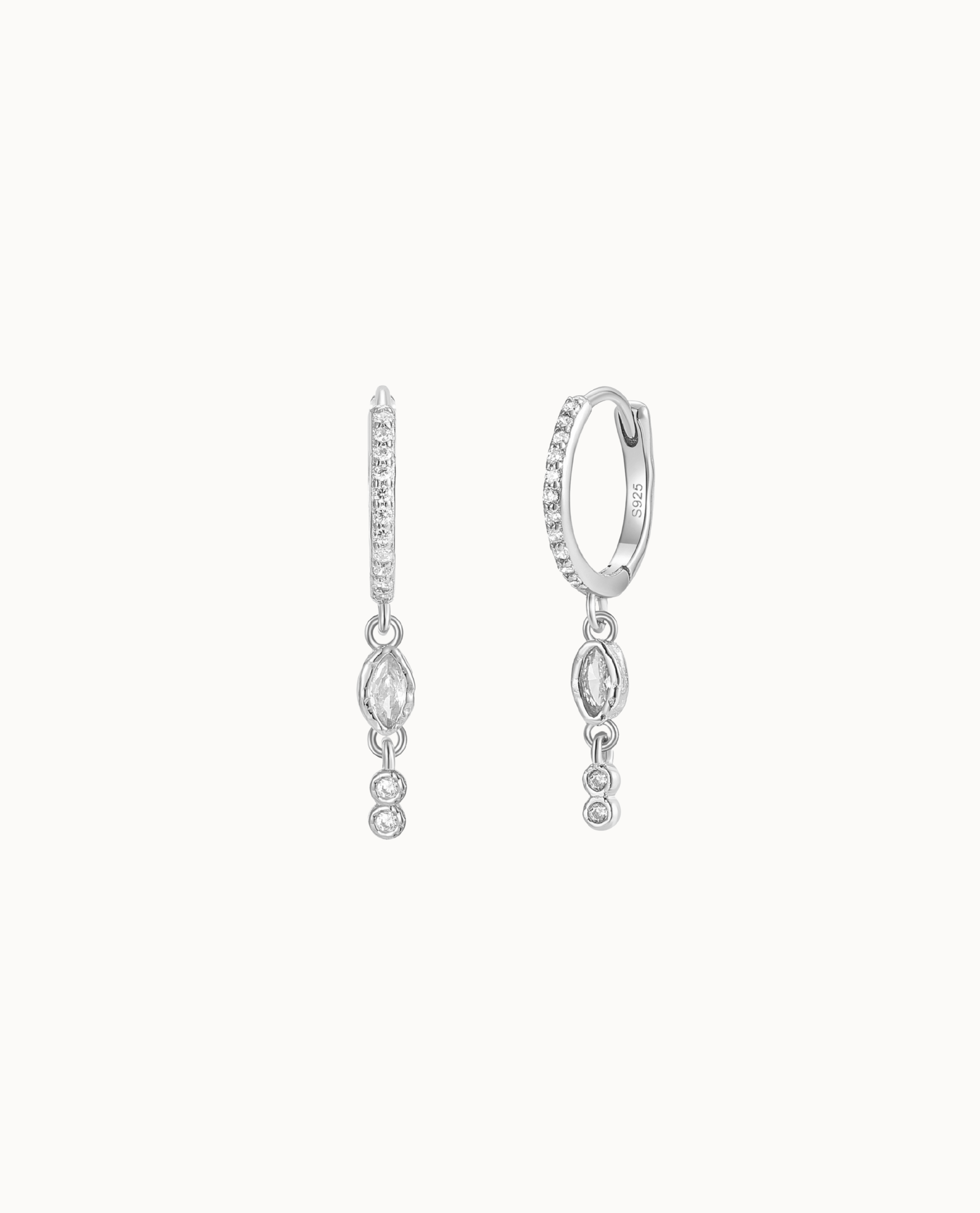Hather Earrings er elegante creoler med hængende dråbeformede detaljer og klare zirkoner. Der fanger lyset smukt. Det tidløse design gør dem ideelle til både hverdag og særlige anledninger. Øreringene er en del af Ancient kollektionen. Som er inspireret a