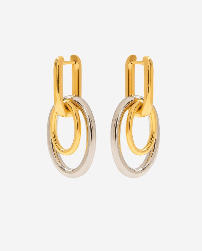 Et cool miks af sølv og guld i et legende. Geometrisk design perfekt til et moderne statement-look. Materiale. Forgyldt stålStørrelse. 3cm