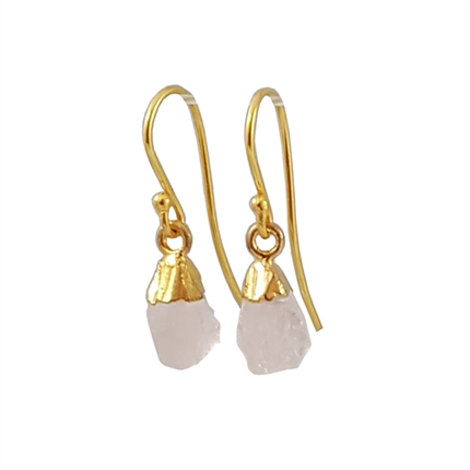 Skønne og feminine øreringe med de sødeste uslebne rosakvarts. Stenene er rå og uslebne. Hvilket gør, at de står fantastisk til resten af øreringene.