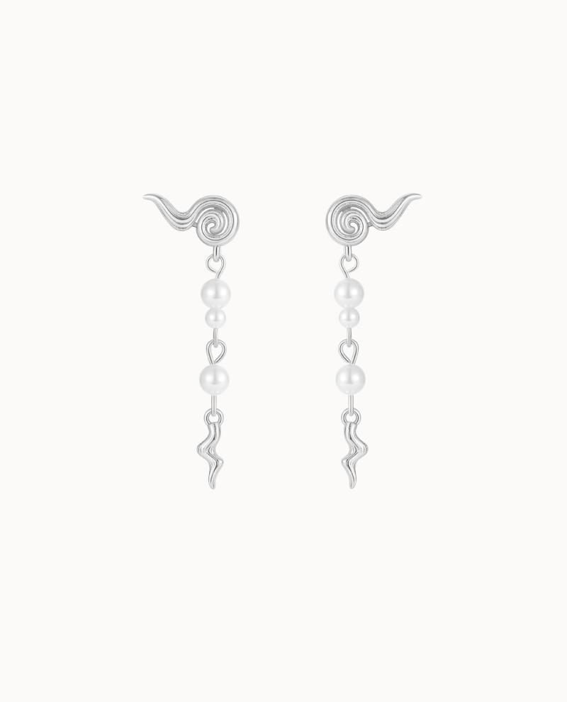 Sarka Earrings er et par smukke ørestikker. Der fanger øjet med deres forskellige detaljer. Inspireret af bølgerne. Har disse øreringe snoede. Bølgende vedhæng og skalperler i forskellige størrelser. De giver et levende udtryk. Der minder om havets bevæge
