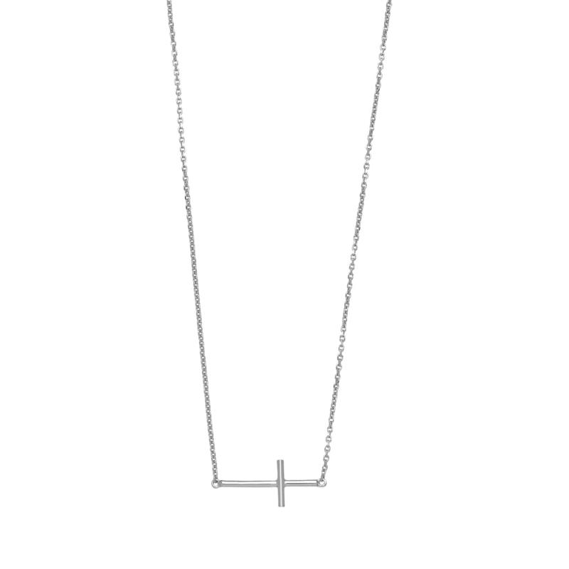 Flot sølv halskæde fra kollektionen Believe Believe kollektionen består af både ørestikker. Armbånd og halskæder. Denne super fine og nydelige halskæde i rhodiumbelagt sterlingsølv er designet med et liggende kors. Halskæden er perfekt til både hverdag og