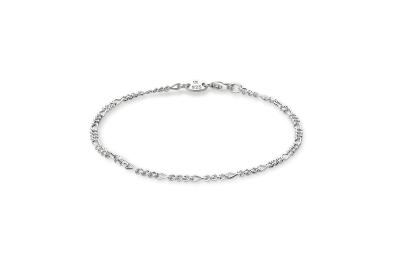Sølv Figaro Armbånd fra Ix Studios er et klassisk smykke med et moderne twist. Dette armbånd måler 2 mm i bredden. Hvilket gør det til en perfekt accessory til både hverdag og fest.