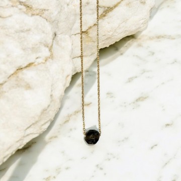 Ena Ethelberg Halskæde med Rå Obsidian Denne smukke halskæde fra Ena Ethelberg kombinerer det rå og det raffinerede i et unikt design. Den er prydet med en stor. Naturlig obsidiansten. Der hænger som et blikfang i halskædens elegante kæde. Obsidianen. Med