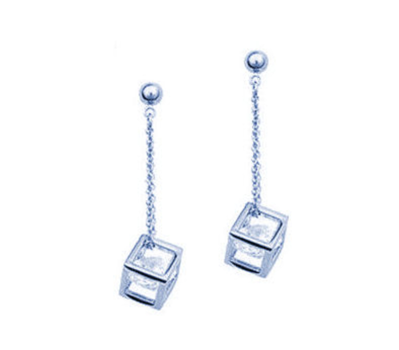8mm terninger med indlagt facetslebet Swarovski zirconium-krystal. 18K forgyldt.